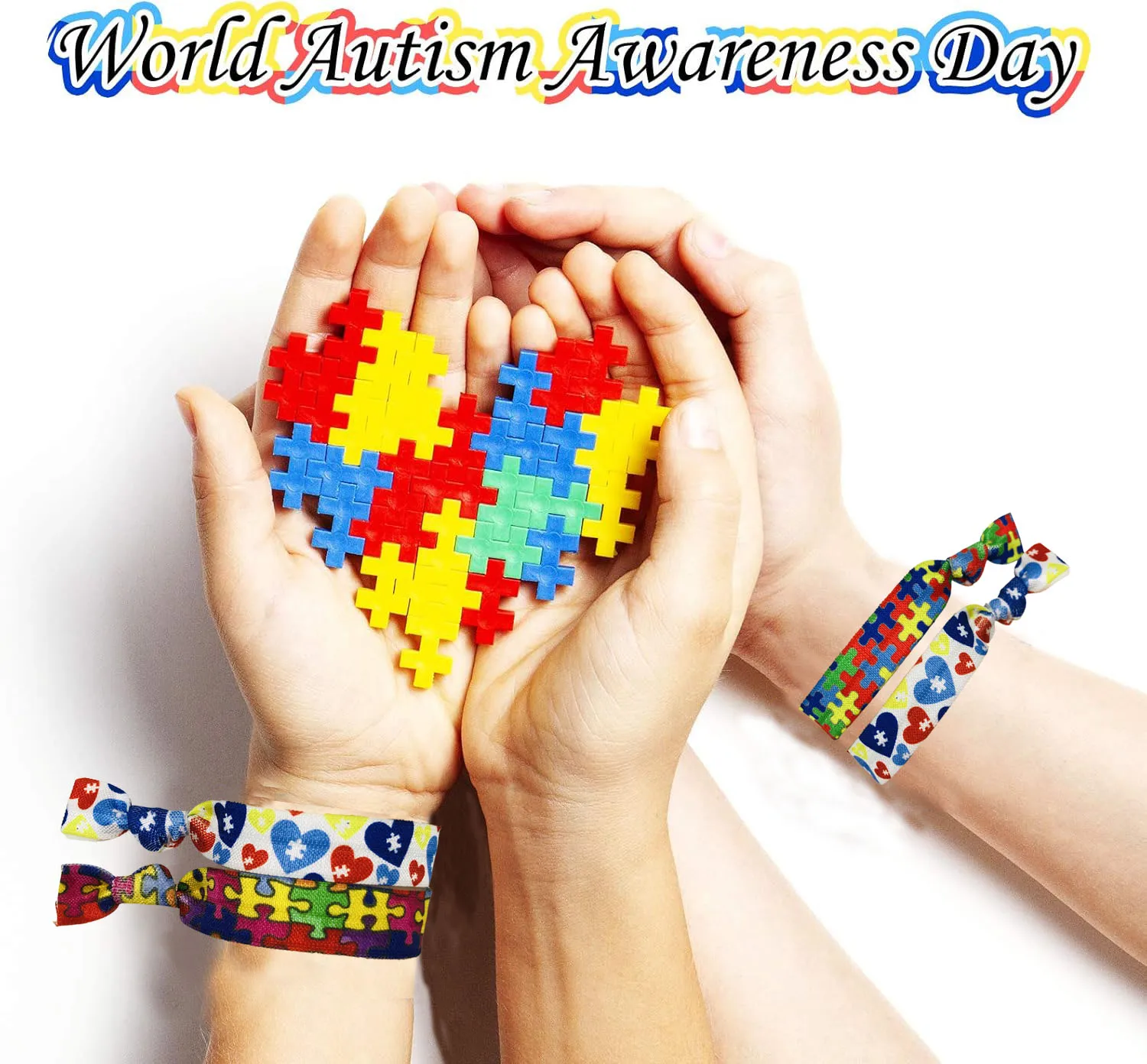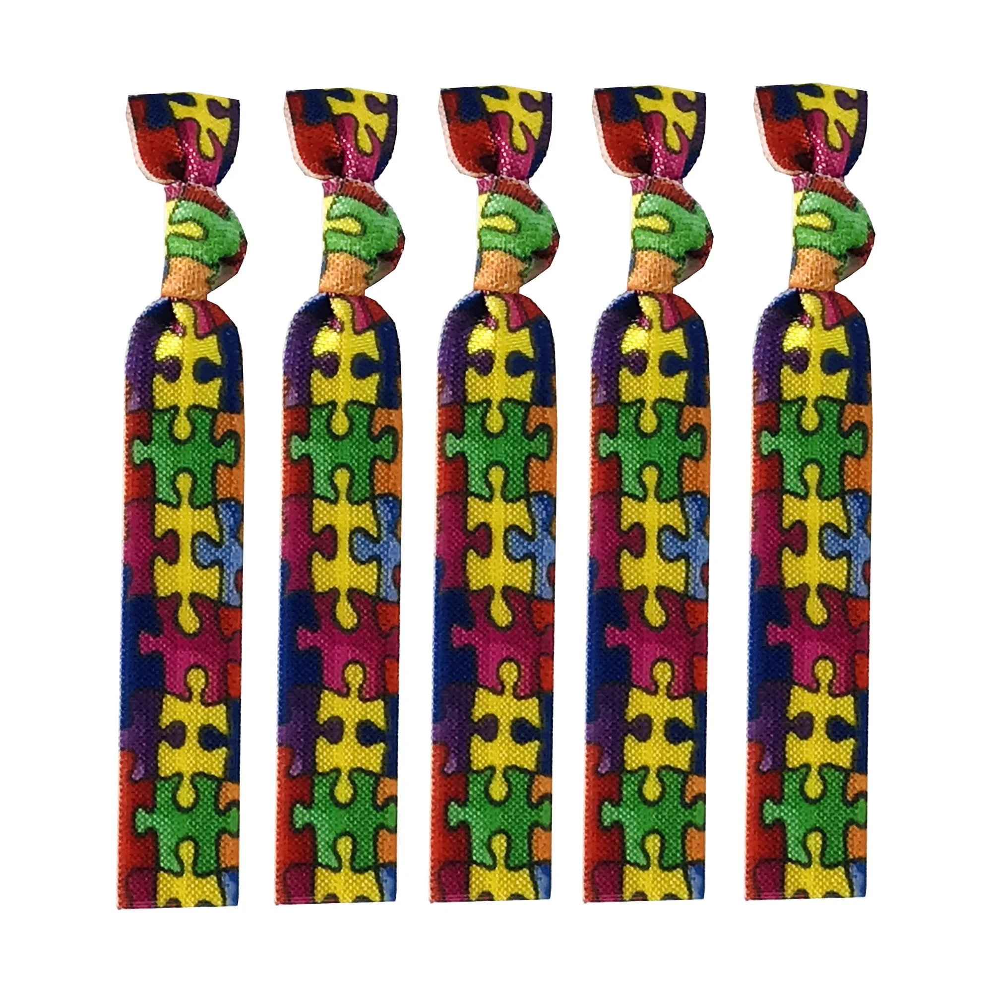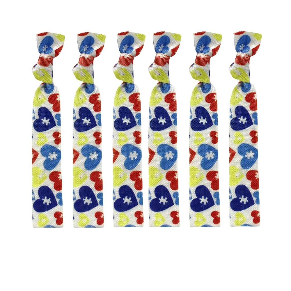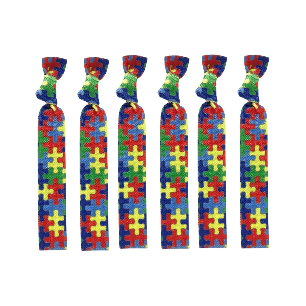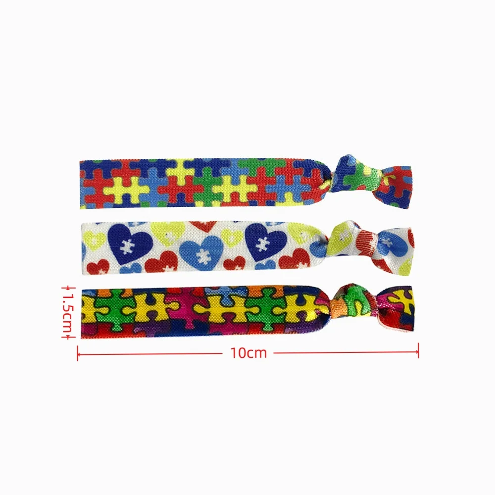 50Pcs/200Pcs Autism Print Elastic Hair bands Wholesale Autism Awareness Ponytail Holder Girls Hair Accessories Headband Set